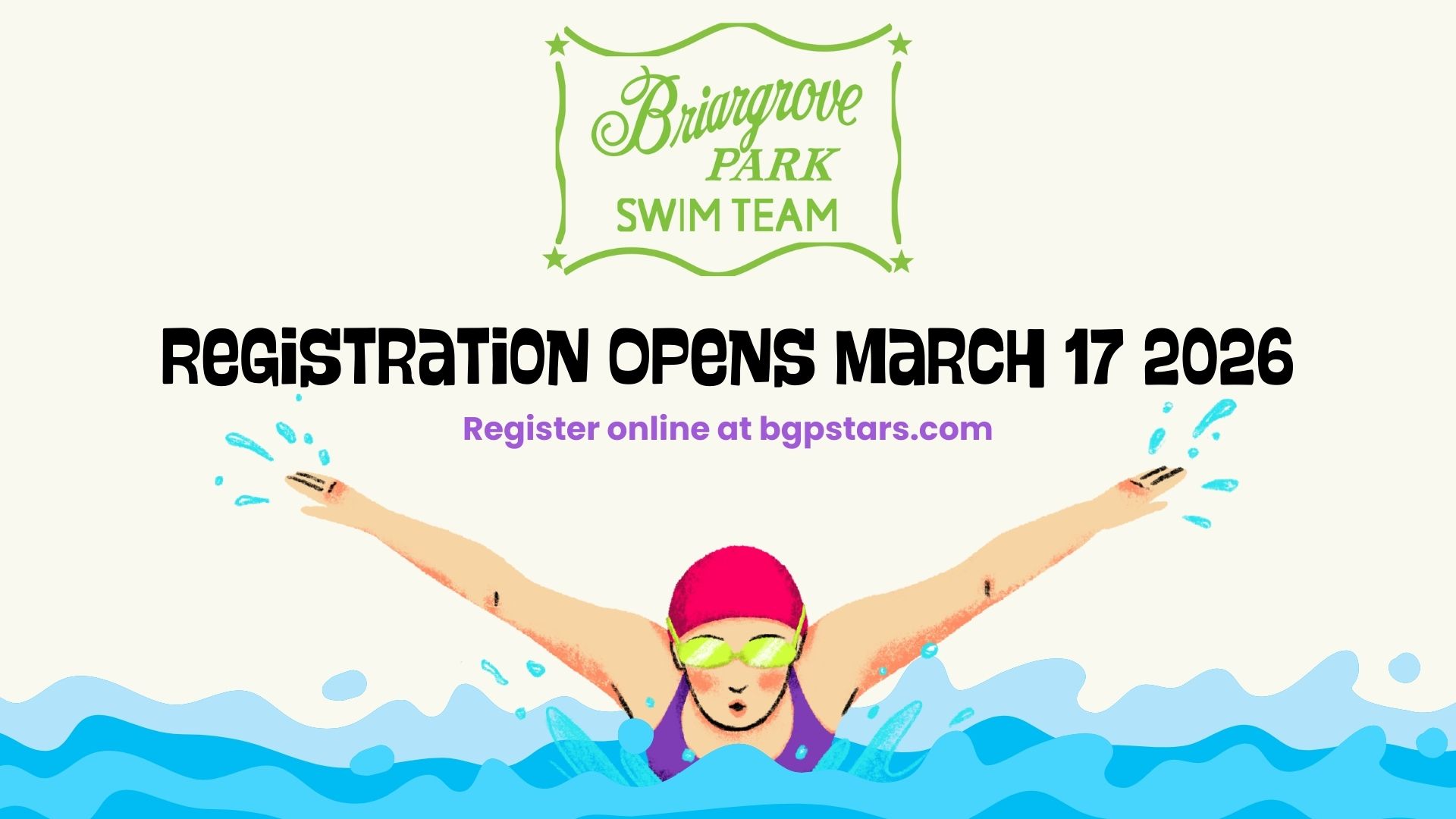 Register your swimmers on March 17, 2026!